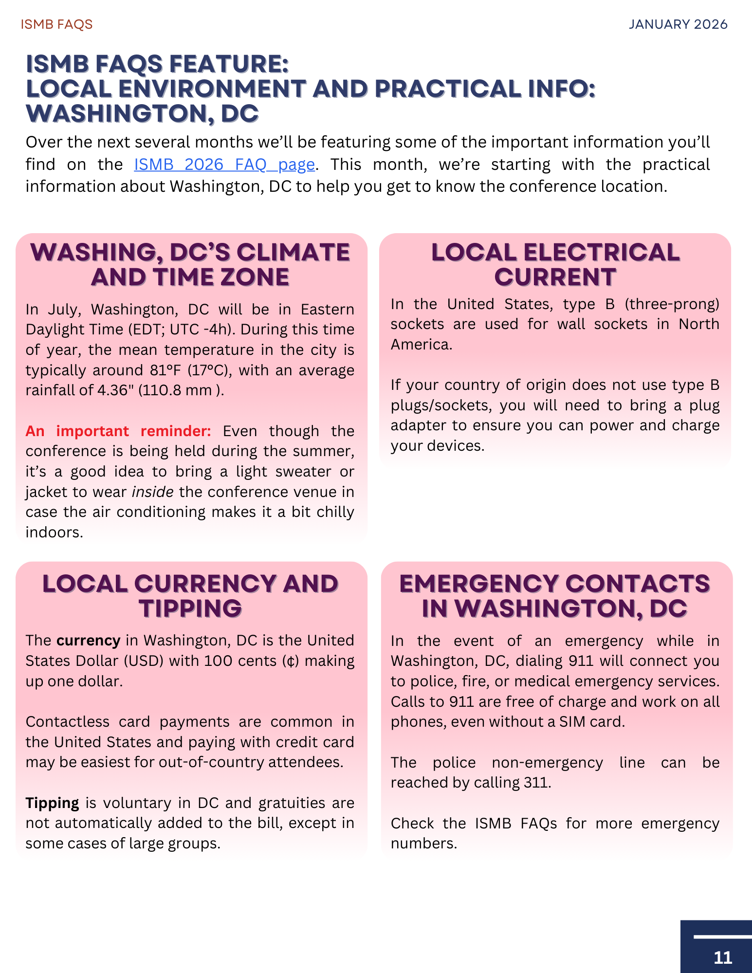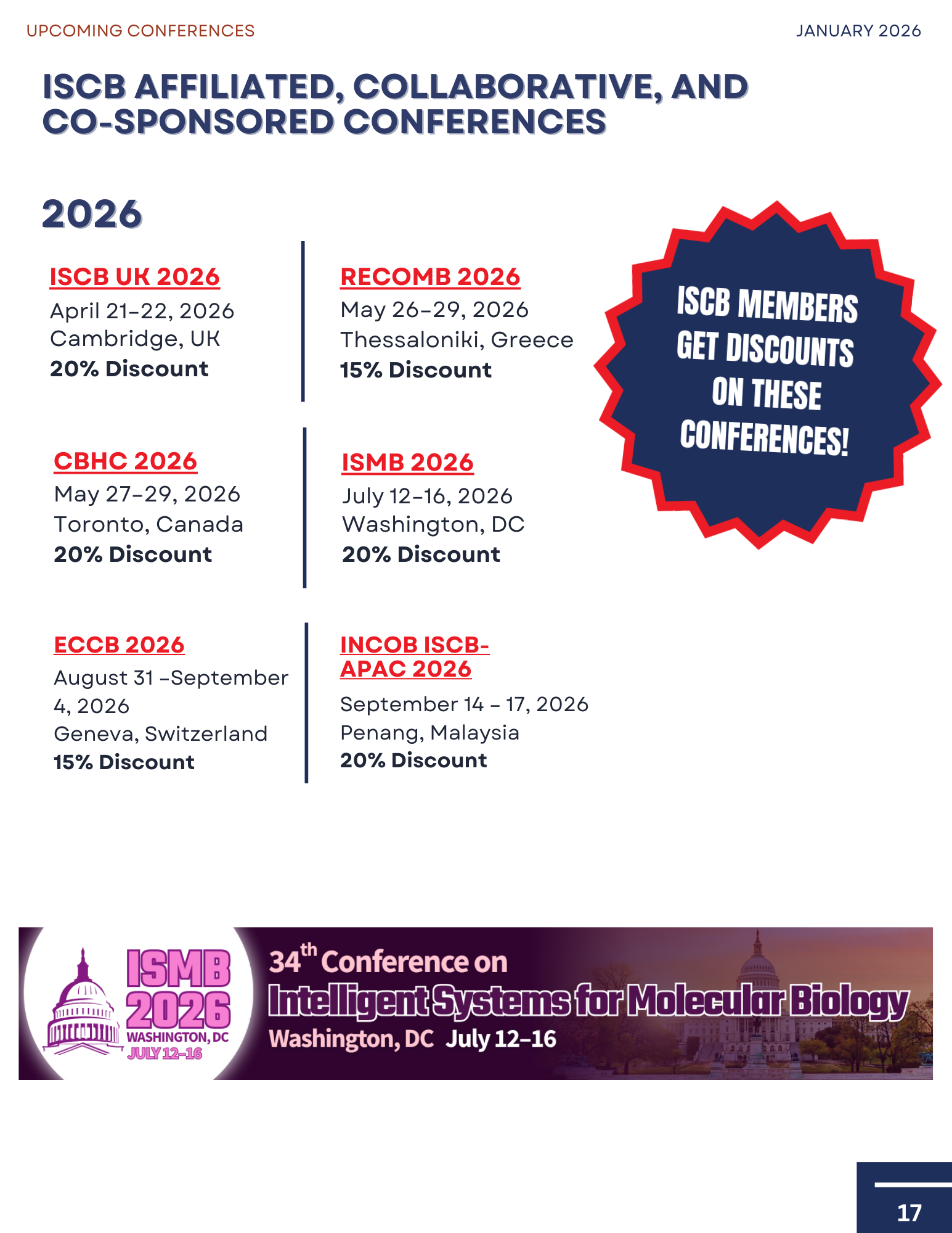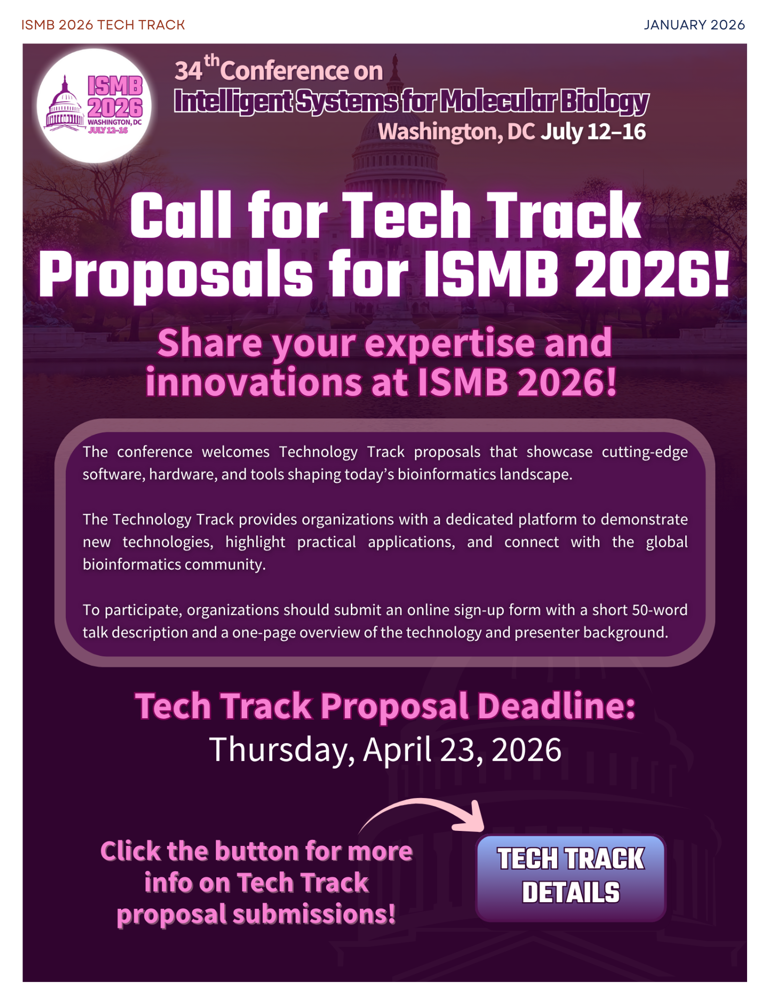 Join us in Washington, DC for five days of talks, posters, and special sessions highlighting the latest research in computational biology at ISMB 2026!