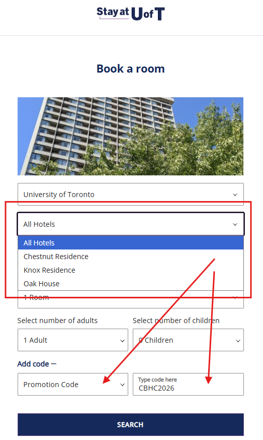Please use the promo code CBHC2026 and the Direct Booking Link: https://reservations.stayatuoft.com/search-rates.