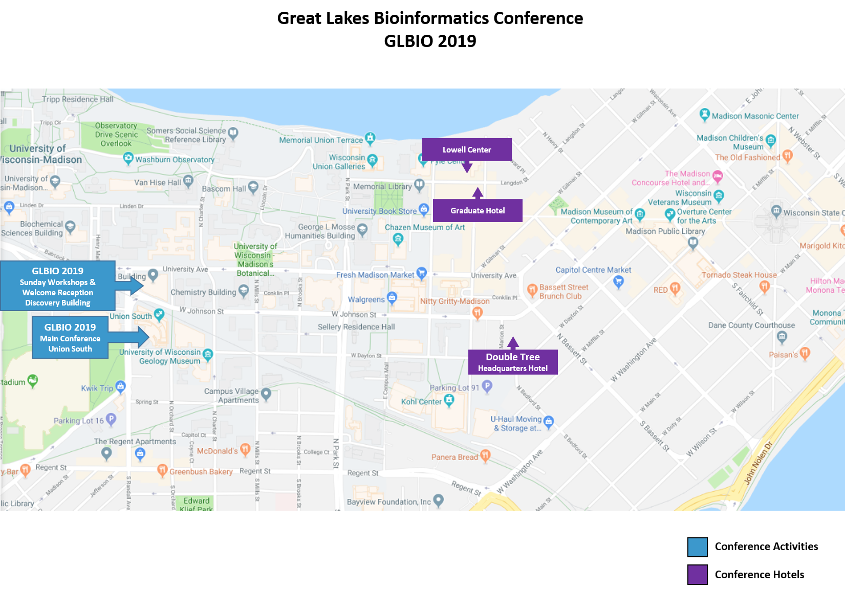 GLBIO 2019 will take place in two buildings at the University of Wisconsin-Madison:
