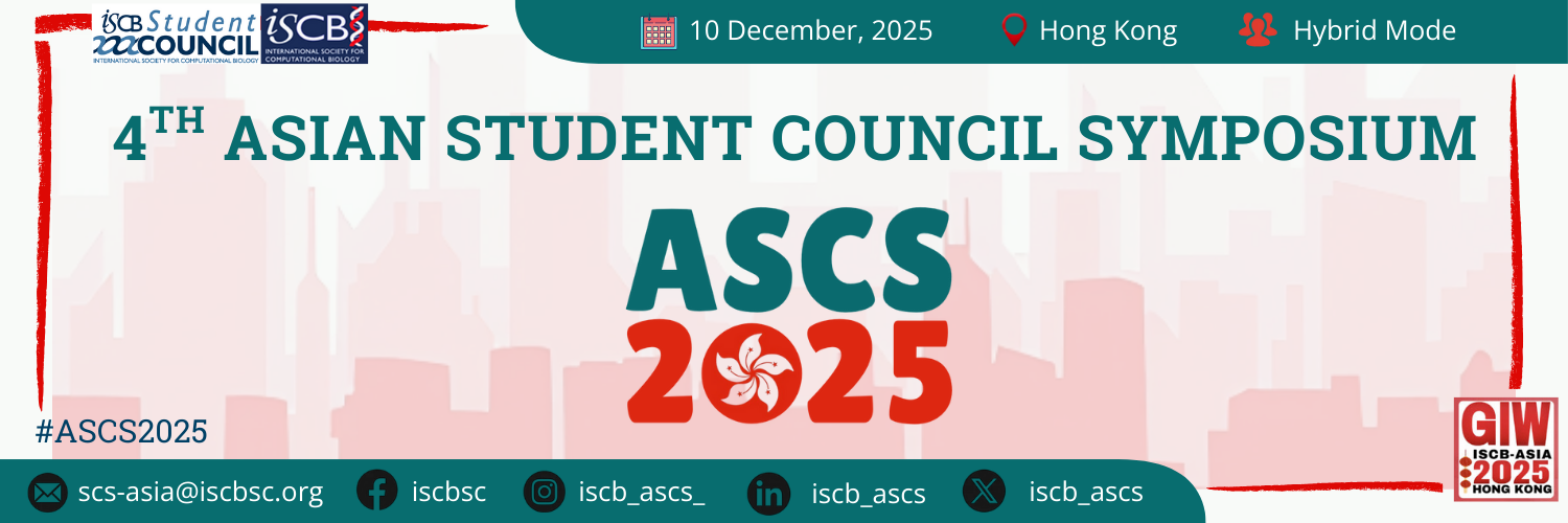 We invite you to submit abstracts to the 4th Asian Student Council Symposium (#ASCS2025), taking place in Hong Kong on 10th December 2025, preceding the International Conference on Genome Informatics ISCB-Asia (GIW XXXIV ISCB-ASIA 2025) 🎉
