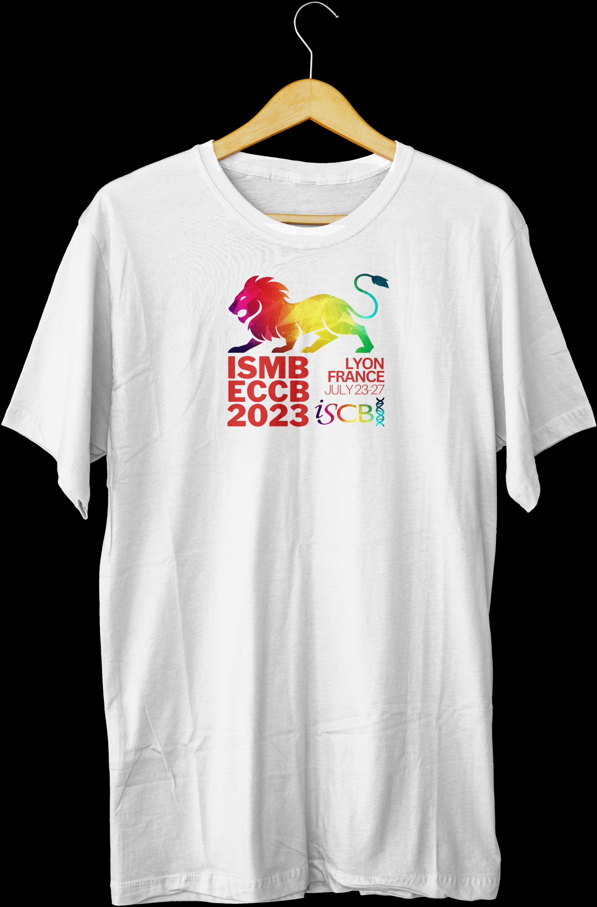 Conference delegates (available only to in-person conference participants) can purchase the ISMB/ECCB 2023 Conference tee shirt during online registration. These high-quality tee shirts can be pre-ordered online until June 15, 2023, at a cost of €15.00 + VAT each. (Please note tee shirts are not available for sale on-site).